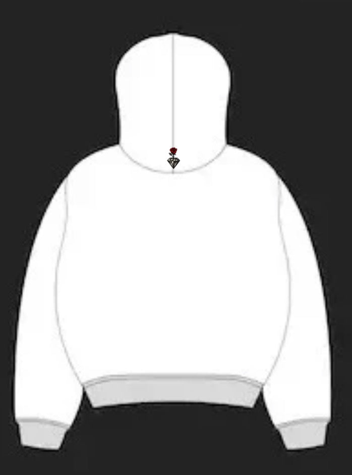 Un hoodie blanc, pur, comme une toile silencieuse. Rien n’est laissé au hasard : dans le haut du dos, l’emblème Harlen s’élève. Le diamant, symbole d’éternité et de force, se marie à la rose rouge, symbole de passion et de fragilité. Deux mondes opposés se rejoignent dans un équilibre parfait.